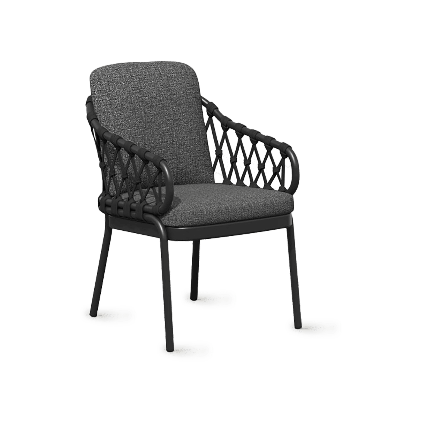 De Liv Dining Chair in Charcoal is de ideale combinatie van strak design en praktisch gemak. Het aluminium frame is behandeld met een weerbestendige poedercoating, wat zorgt voor een lange levensduur, zelfs bij intensief buitengebruik. De donkere, antracietkleurige afwerking straalt een eigentijdse elegantie uit, perfect voor een moderne of industriële tuin.