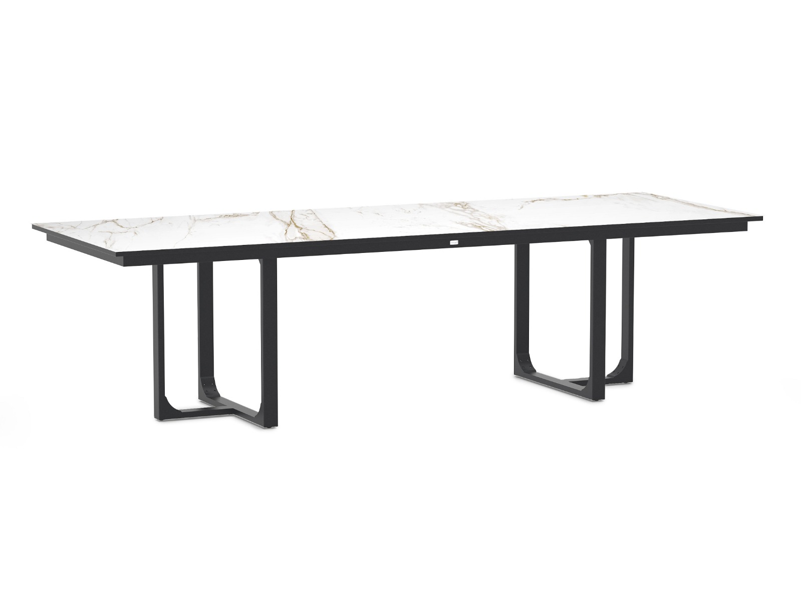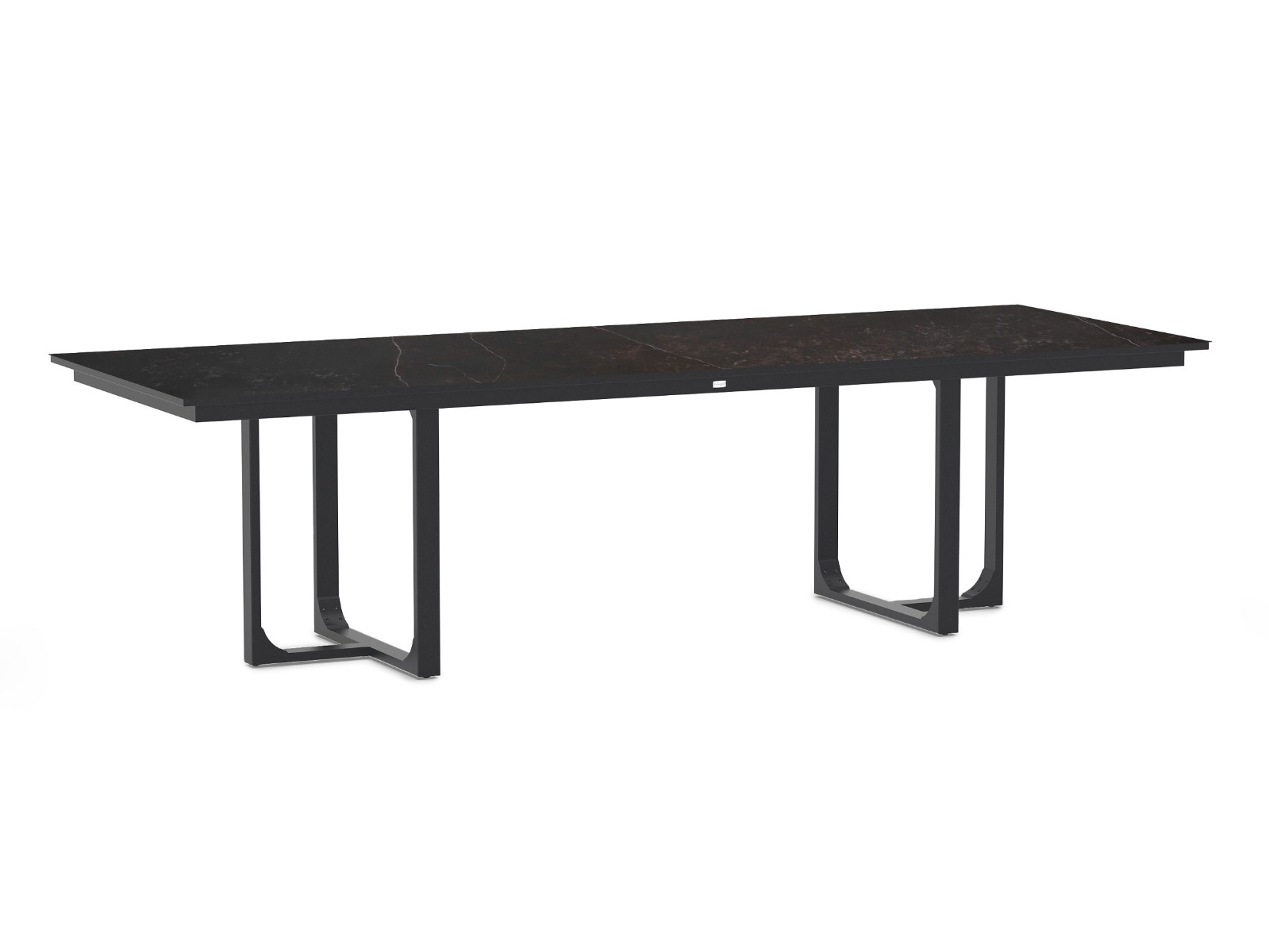Het aluminium onderstel in een zachte crème witte tint geeft een luchtige en moderne uitstraling. Deze lage eettafel is ideaal voor ontspannen diners en borrels in een loungesetting. Combineer hem met comfortabele loungestoelen voor een gezellige en uitnodigende sfeer.